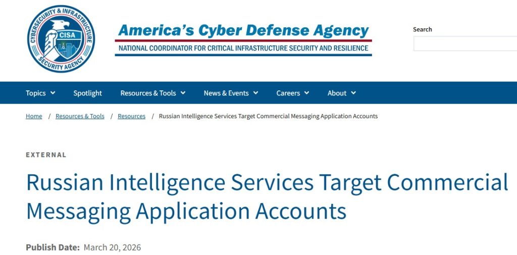 Le 20 mars 2026, le Federal Bureau of Investigation (FBI) et la Cybersecurity and Infrastructure Security Agency (CISA) ont conjointement publié un avis de sécurité public (PSA I-032026-PSA) signalant une campagne active d’acteurs cyber associés aux Russian Intelligence Services (RIS) ciblant les comptes d’applications de messagerie commerciale (CMA). L’application principalement visée est Signal, bien que la campagne soit documentée comme applicable à d’autres CMA. Cet avis fait suite à un avertissement similaire émis début mars 2026 par les agences de renseignement néerlandaises MIVD et AIVD, et aux travaux publiés en février 2025 par Google Threat Intelligence Group.
