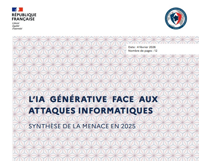 Dans son rapport CERTFR-2026-CTI-001 publié le 4 février 2026, l’ANSSI propose une synthèse structurée de la menace associée à l’intelligence artificielle générative dans le champ des attaques informatiques. Le document se concentre exclusivement sur les systèmes d’IA générative, définis comme des systèmes capables de produire des contenus textuels, visuels, audio ou du code à partir de modèles entraînés sur de vastes corpus de données. Cette catégorie inclut notamment les Large Language Models (LLM).