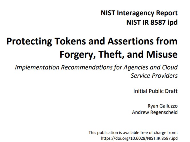 - NIST IR 8597 (Draft): Protecting Tokens and Assertions from Forgery, Theft, and Misuse – csrc.nist.gov